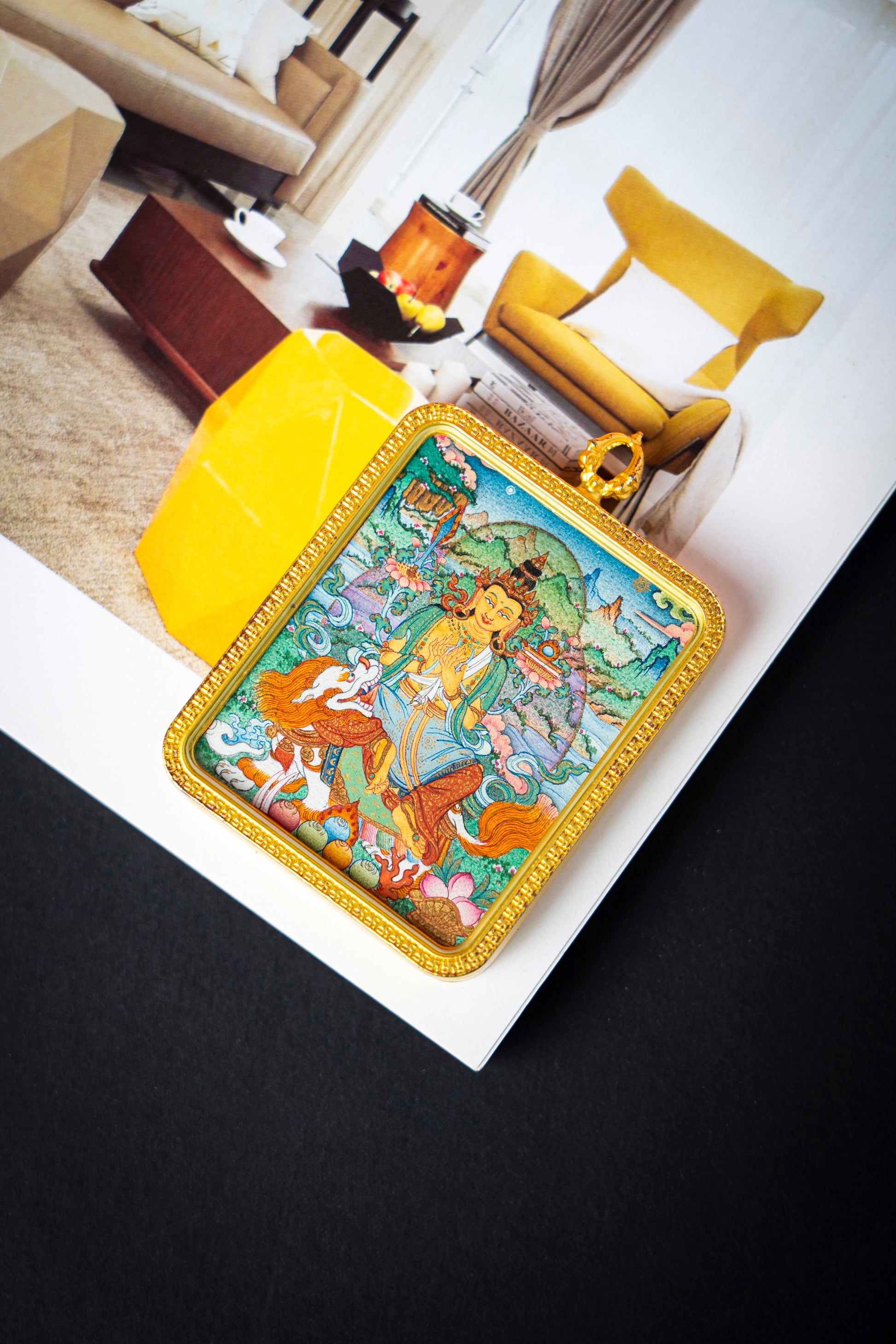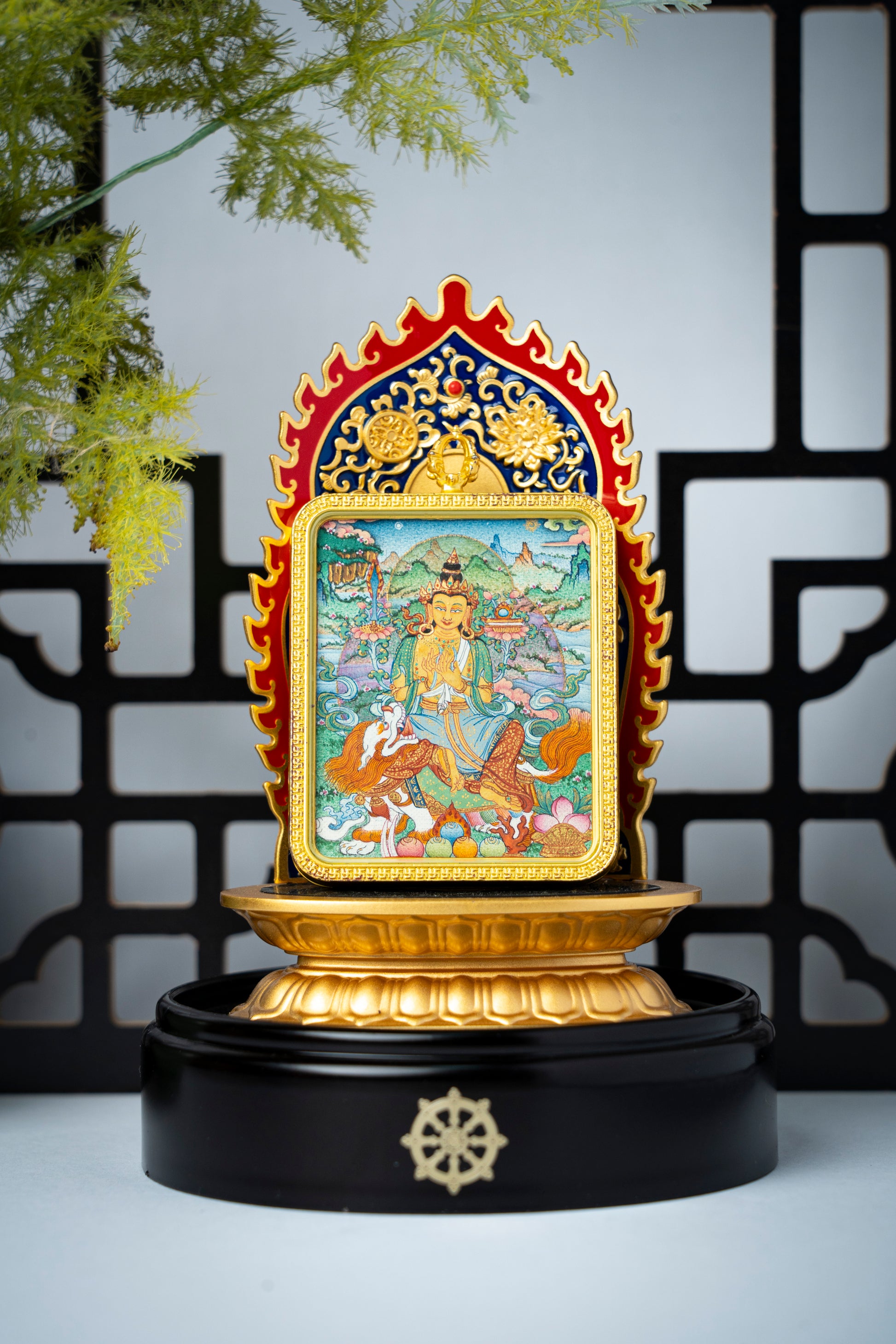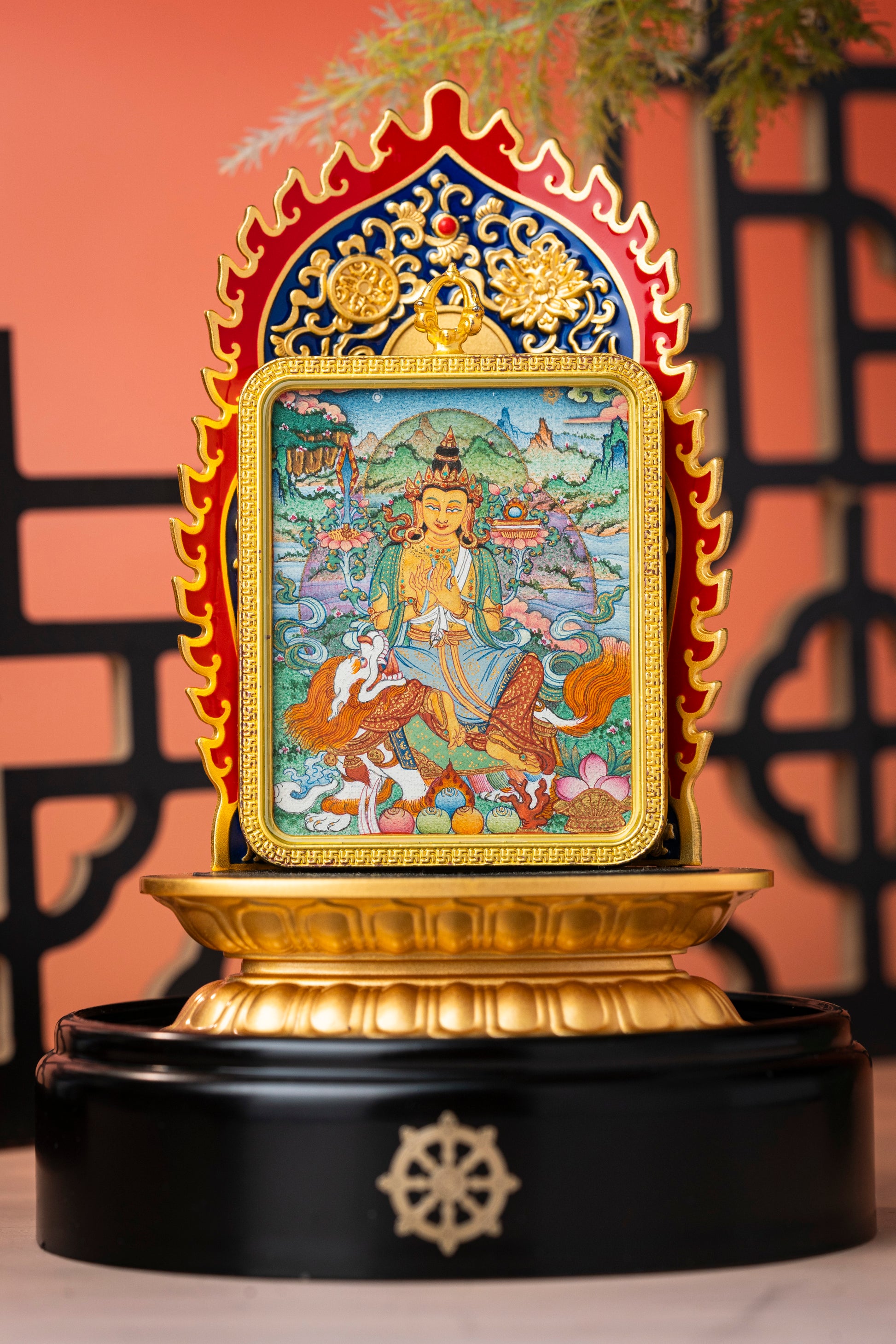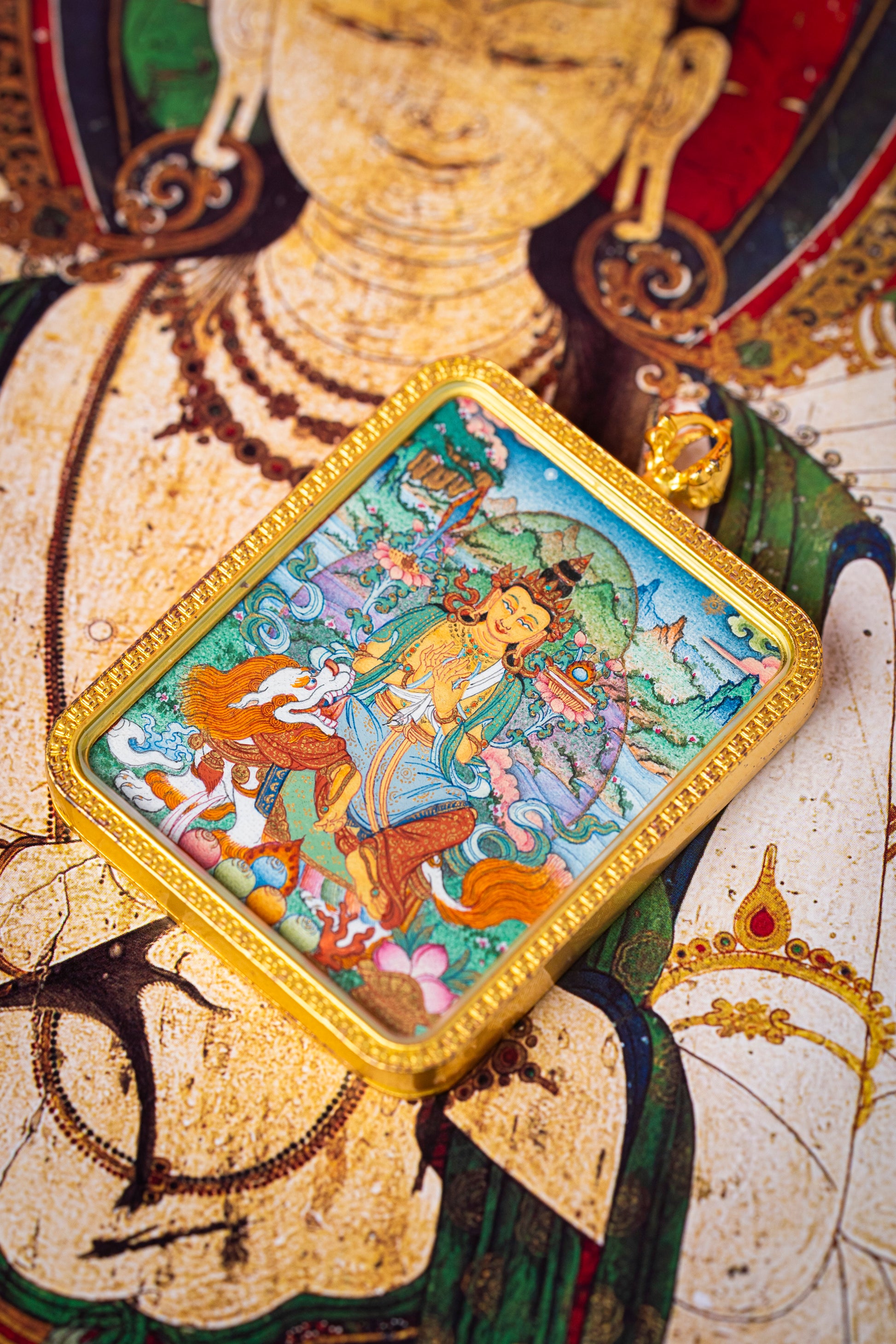 【狮座慧光】手绘开光文殊菩萨唐卡 骑狮佛像吊坠 智慧加持供奉收藏