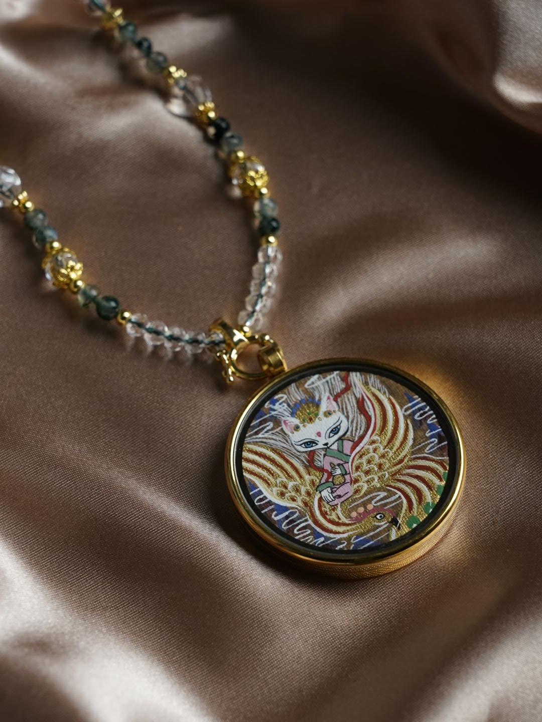 【灵狐祈愿】手绘小凤九唐卡吊坠 随身守护转运男女同款民族风饰品
