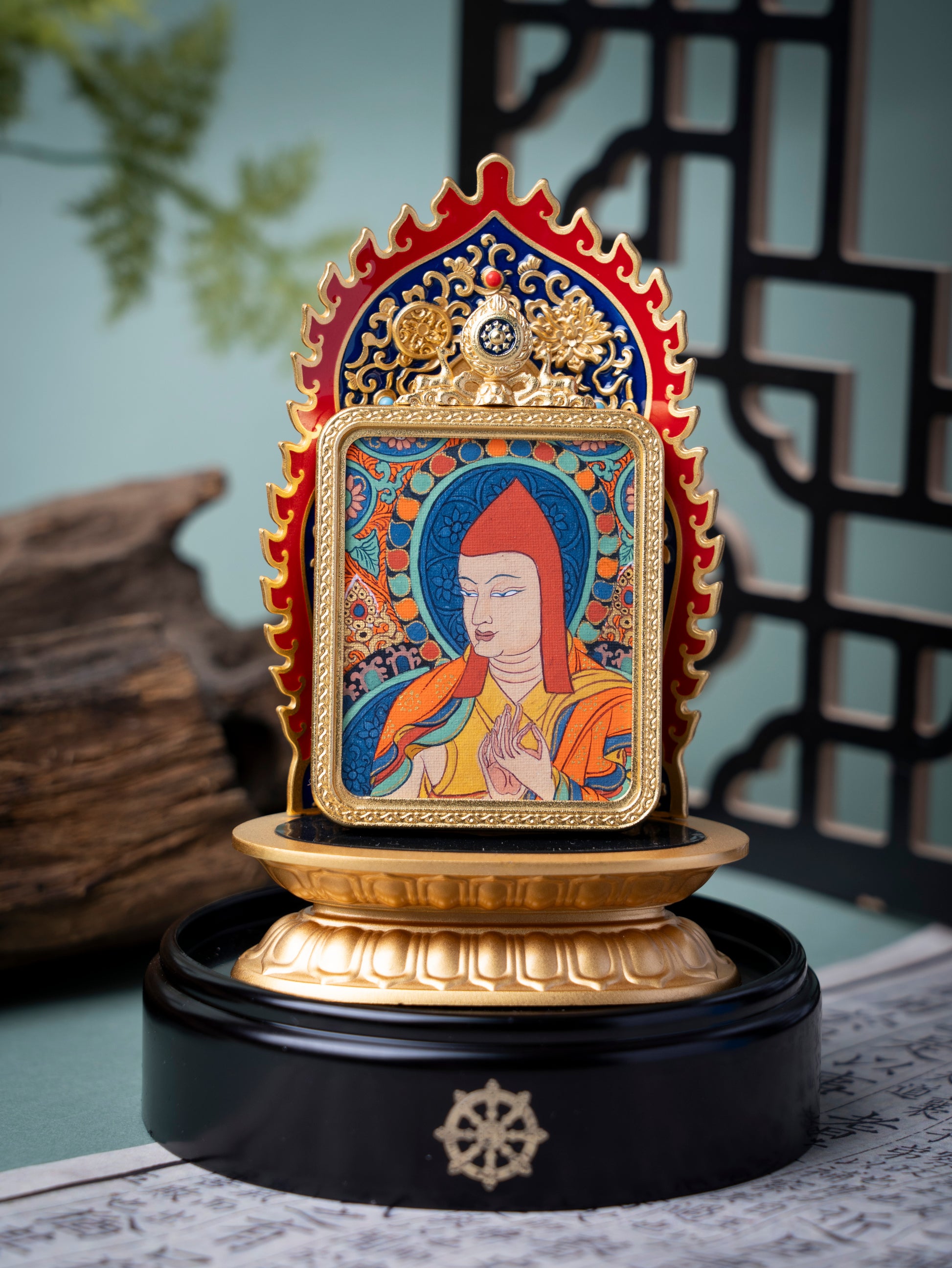 介尊为藏传密宗重要护法,形象威严,象征无畏降伏一切违缘,护持修行者远离障碍。其寓意镇宅安身、消弭灾厄,助众生在世间法中稳健前行。此唐卡由藏地资深大师纯手工绘制,以天然矿物颜料勾勒圣像细节,线条灵动,法相庄严。经百年古寺高僧开光加持,清净加持力具足。可悬挂于居所或随身佩戴,既能得介尊护持,安定心神,又彰显对密法的虔诚,兼具宗教庇佑与艺术收藏价值,为生活注入安稳力量。