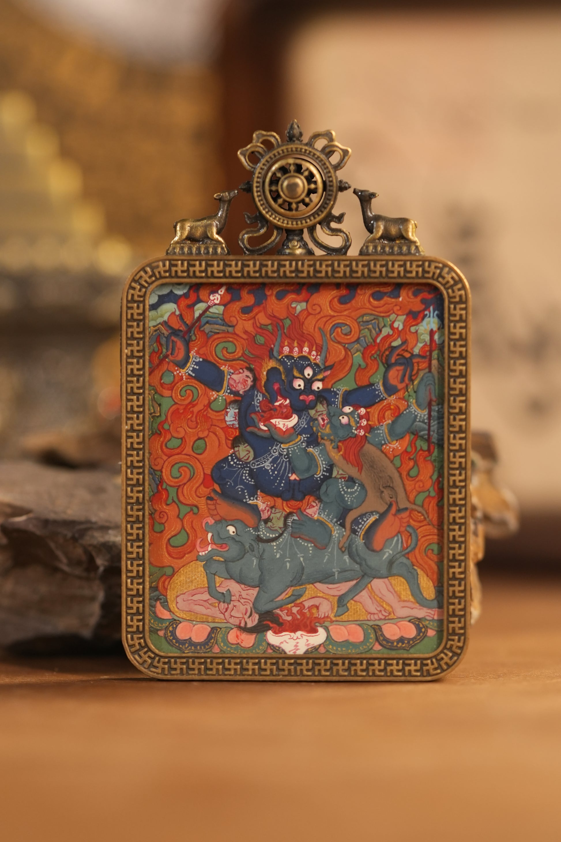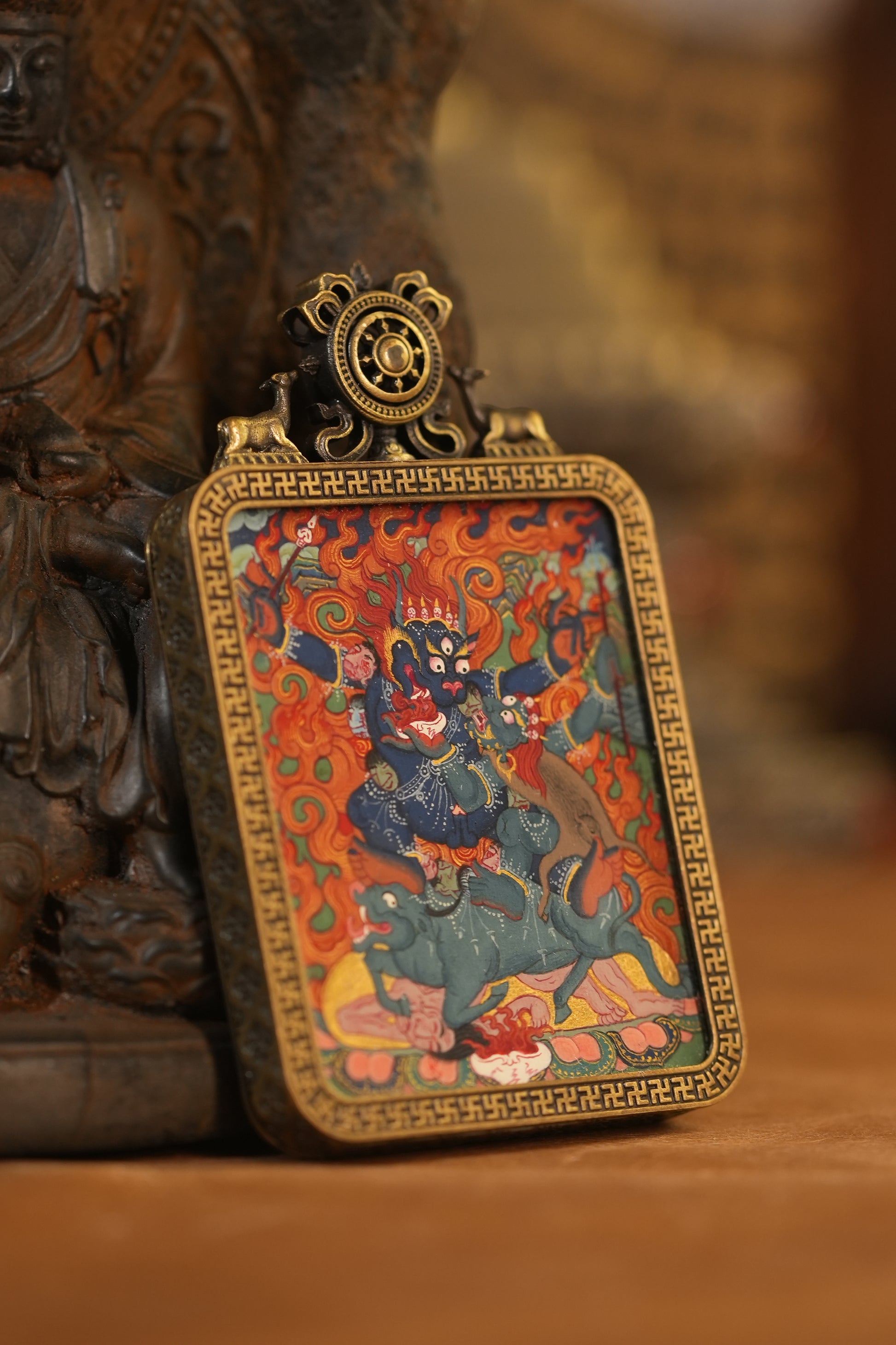 【阎魔伏煞】阎魔敌手绘开光唐卡吊坠 忿怒相 护身