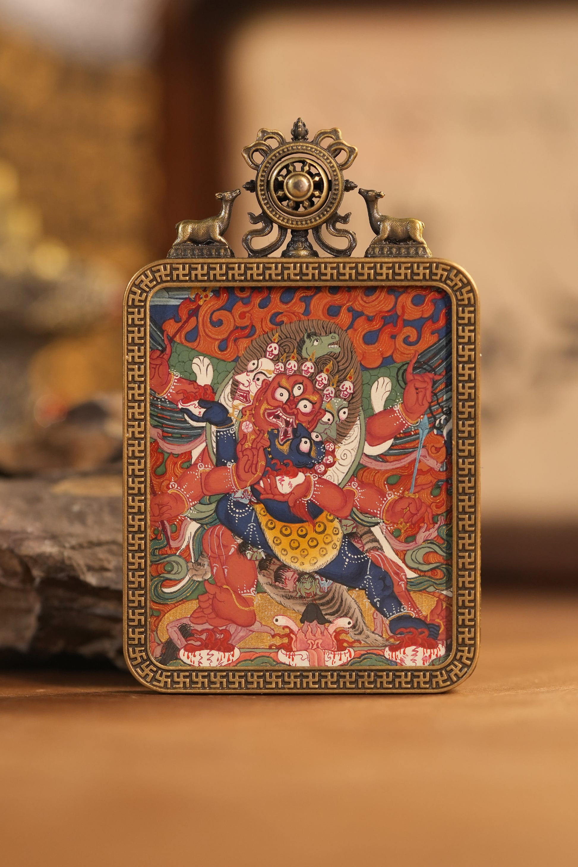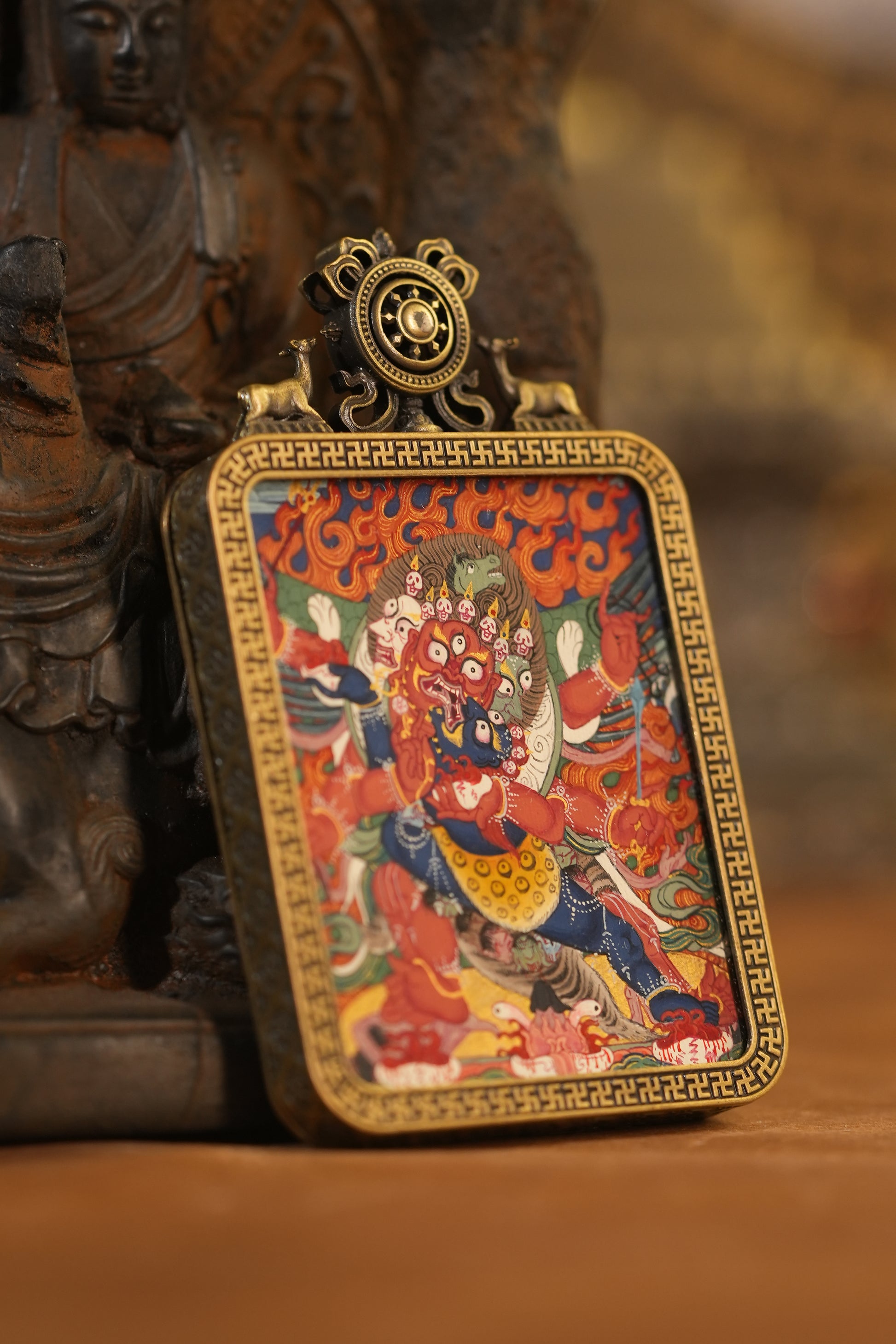 【马头镇厄】手绘开光马头金刚唐卡吊坠 护法加持随身护身符