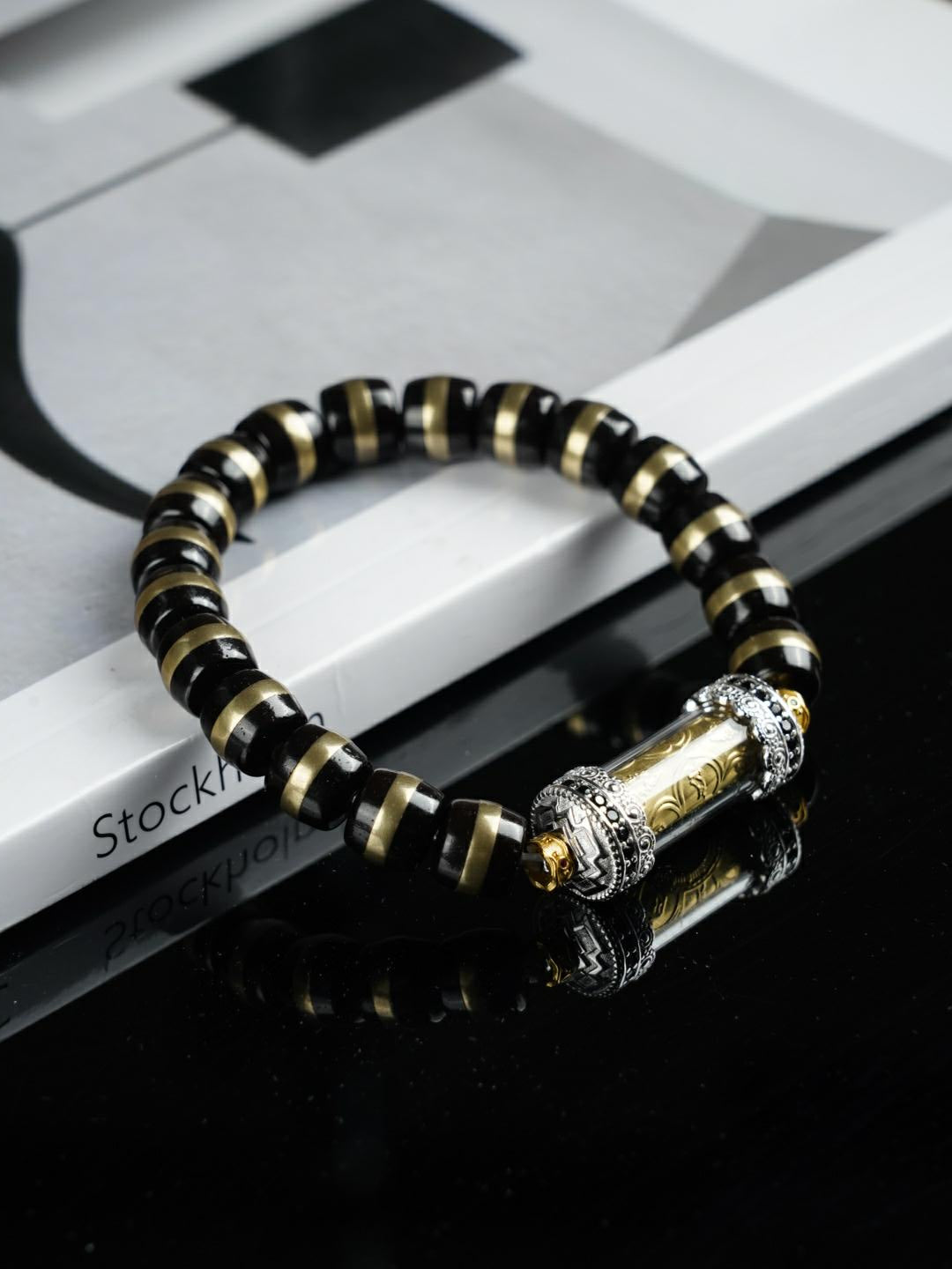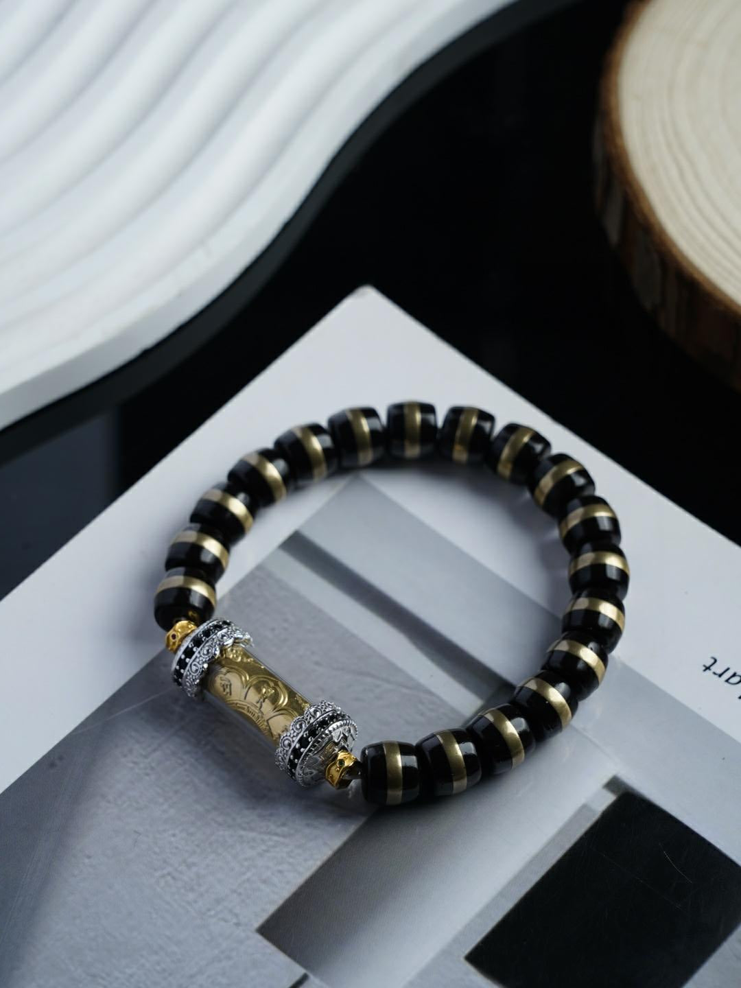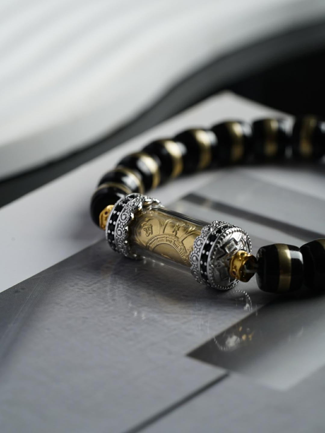五方财对应东、南、西、北、中五方财路,象征财气从各方汇聚,寓意拓宽机遇、纳尽四方福运。手串设计简约利落,银饰细节打磨光滑,贴合手腕无束缚感,日常佩戴既显品味又不失低调。