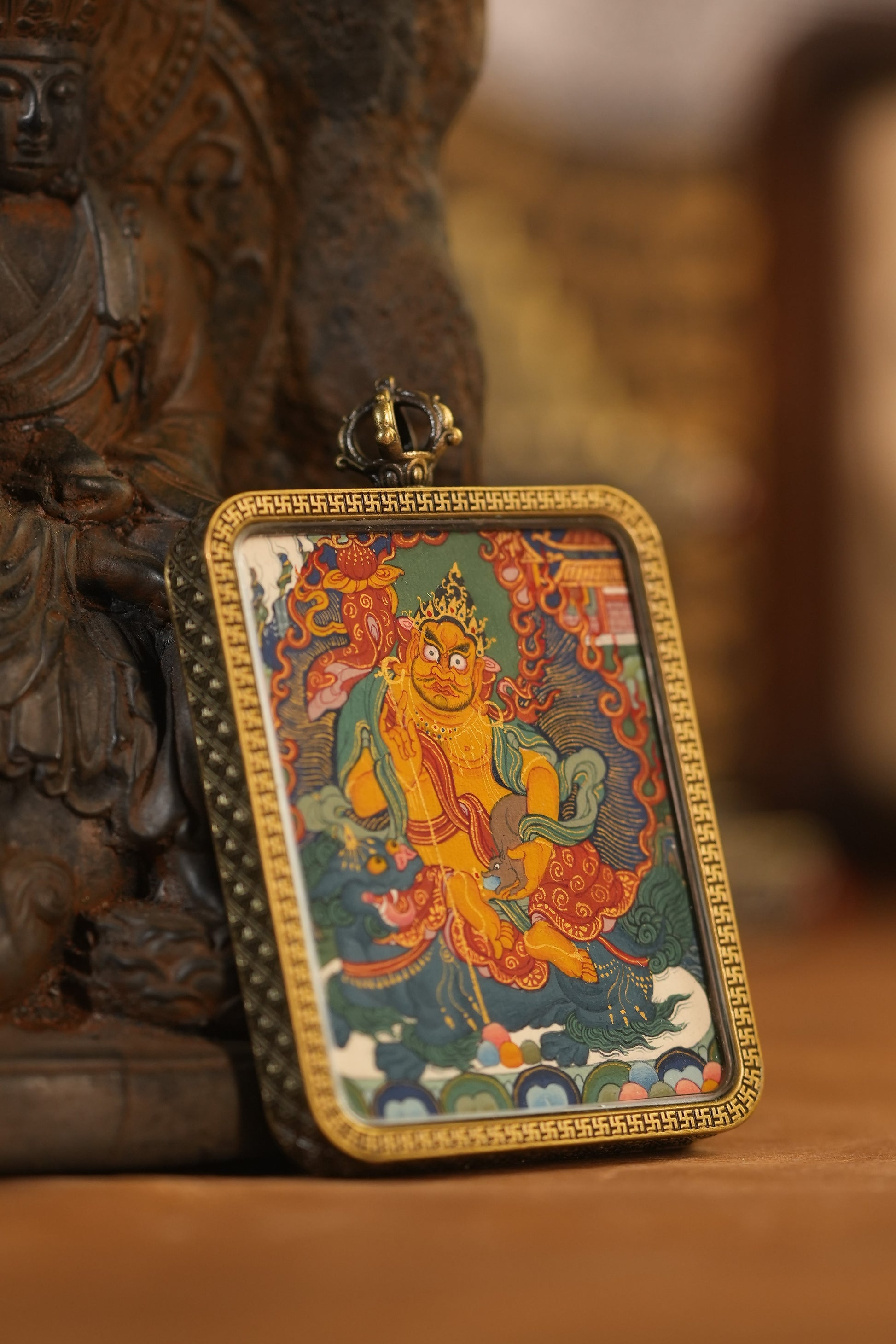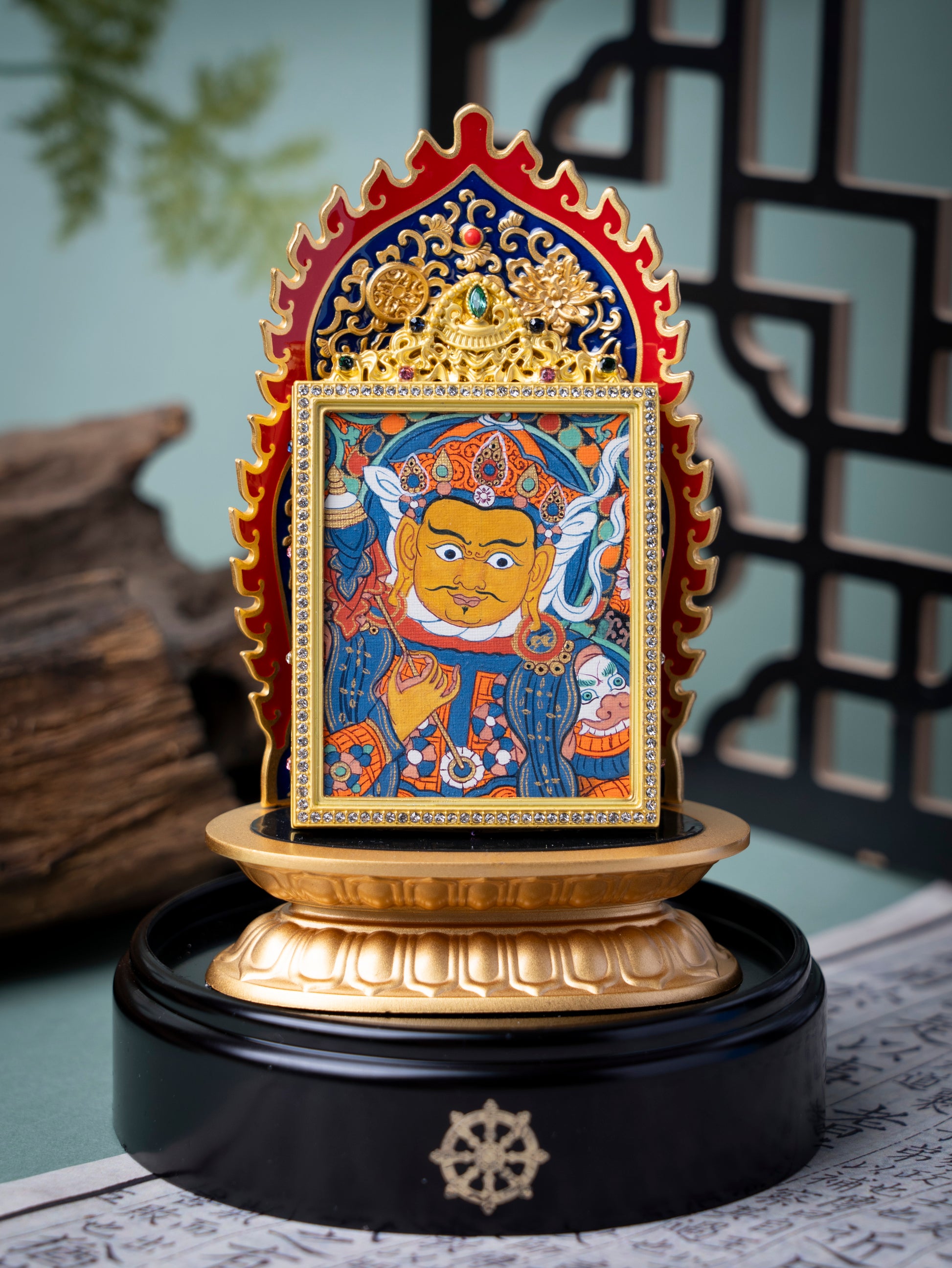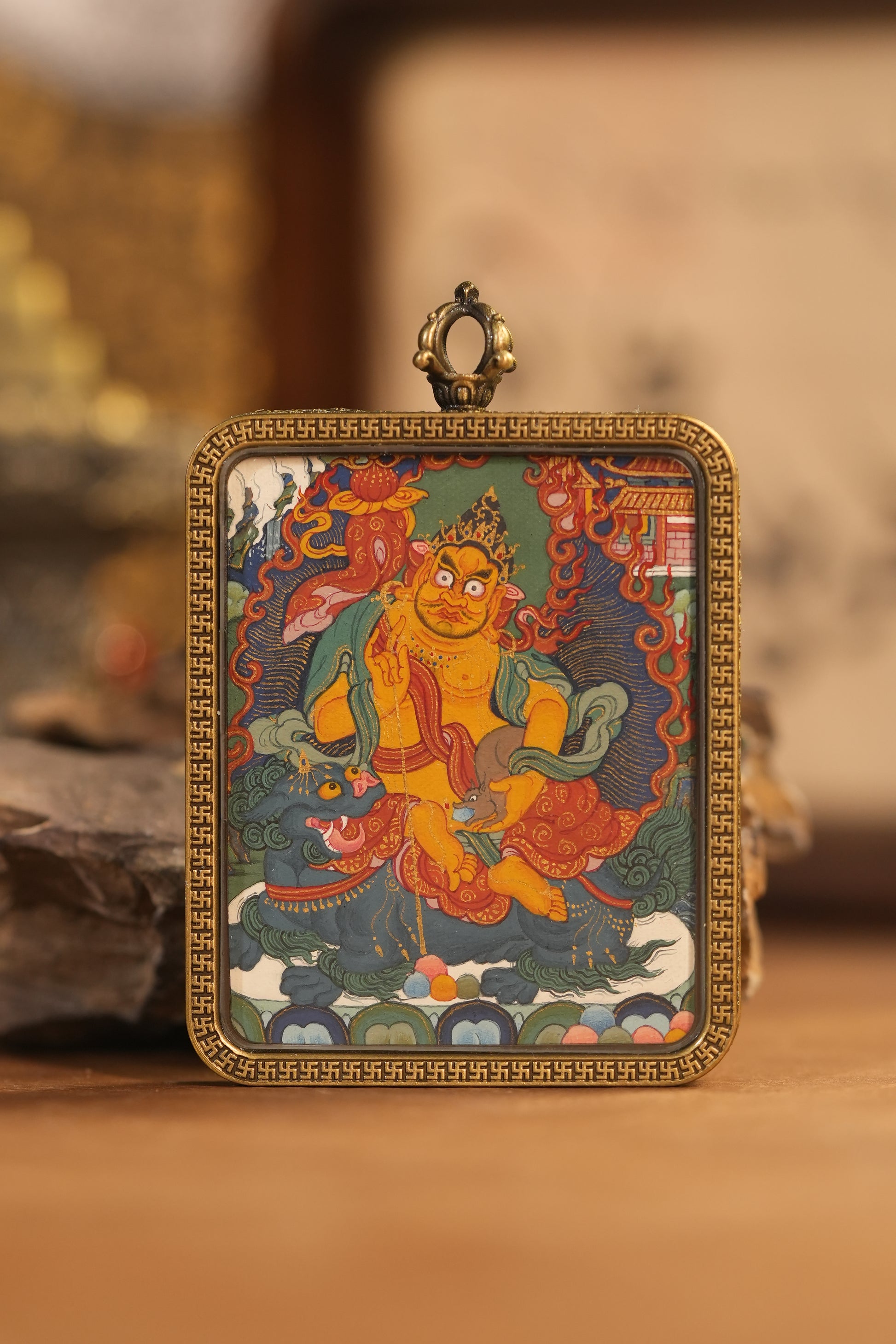 在藏传佛教文化里,财宝天王是重要的护法神,也是掌管世间财富的财神。传说释迦牟尼佛住世时,财宝天王于佛前立誓,护持佛法并赐予众生财富资量 。他身着黄金铠甲,头戴五佛宝冠,右手持宝幢,转动间散布财富;左手托吐宝鼠,能吐出无尽珍宝。