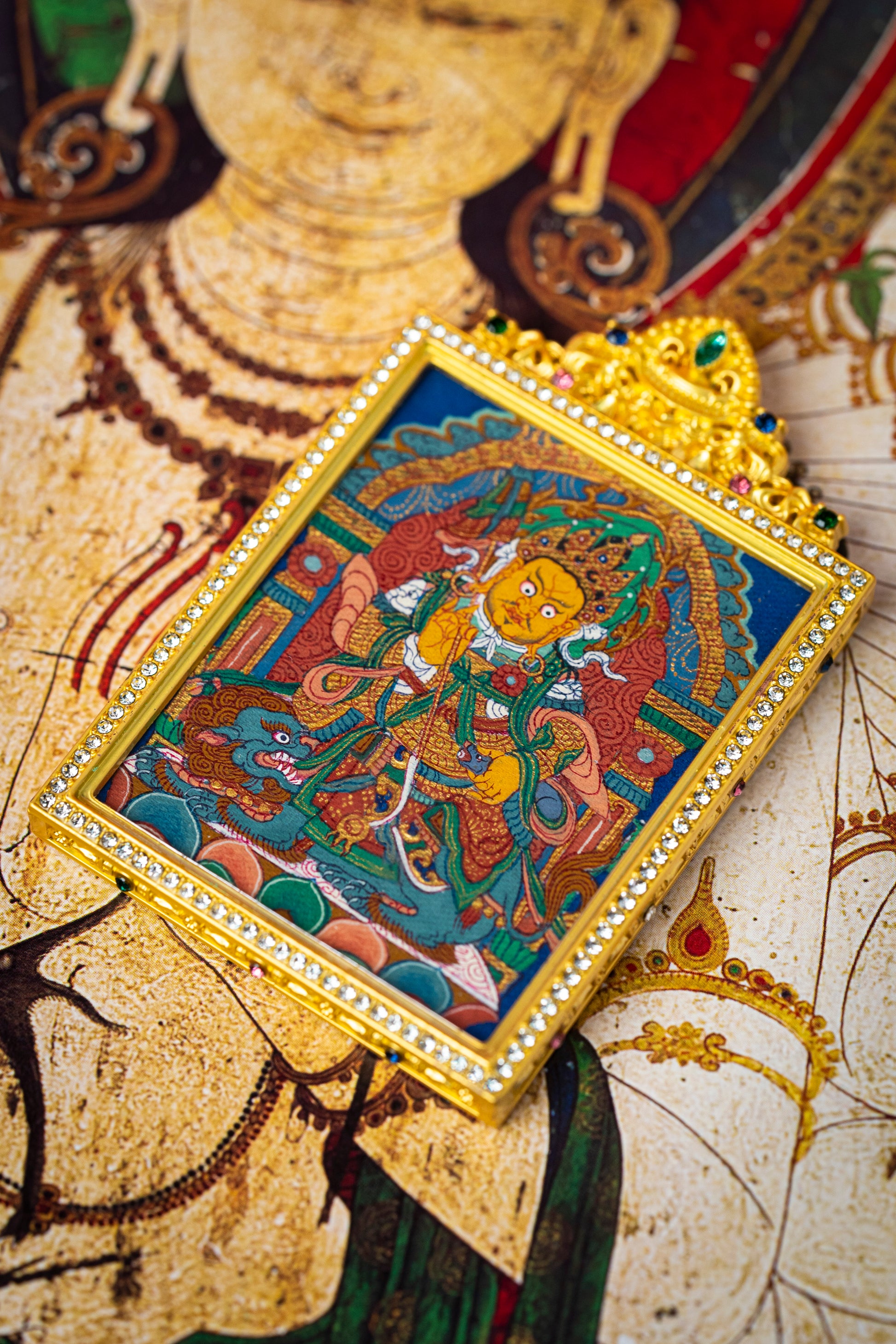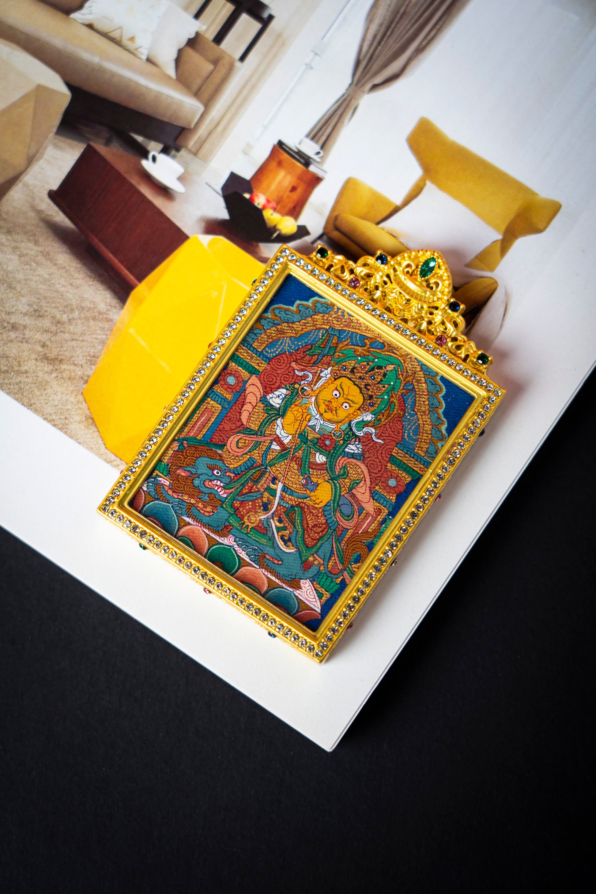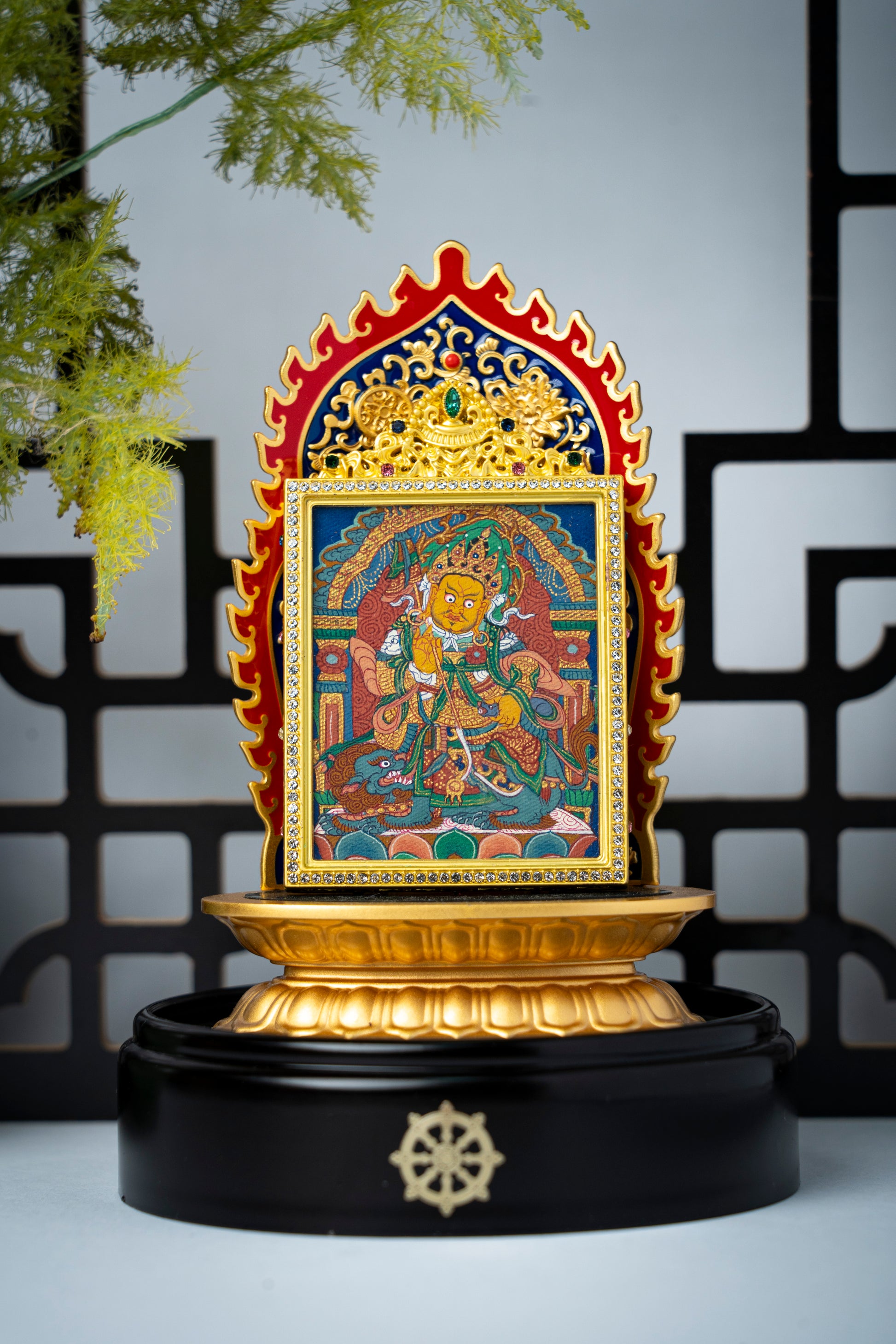 在藏传佛教文化里,财宝天王是重要的护法神,也是掌管世间财富的财神。传说释迦牟尼佛住世时,财宝天王于佛前立誓,护持佛法并赐予众生财富资量 。他身着黄金铠甲,头戴五佛宝冠,右手持宝幢,转动间散布财富;左手托吐宝鼠,能吐出无尽珍宝。