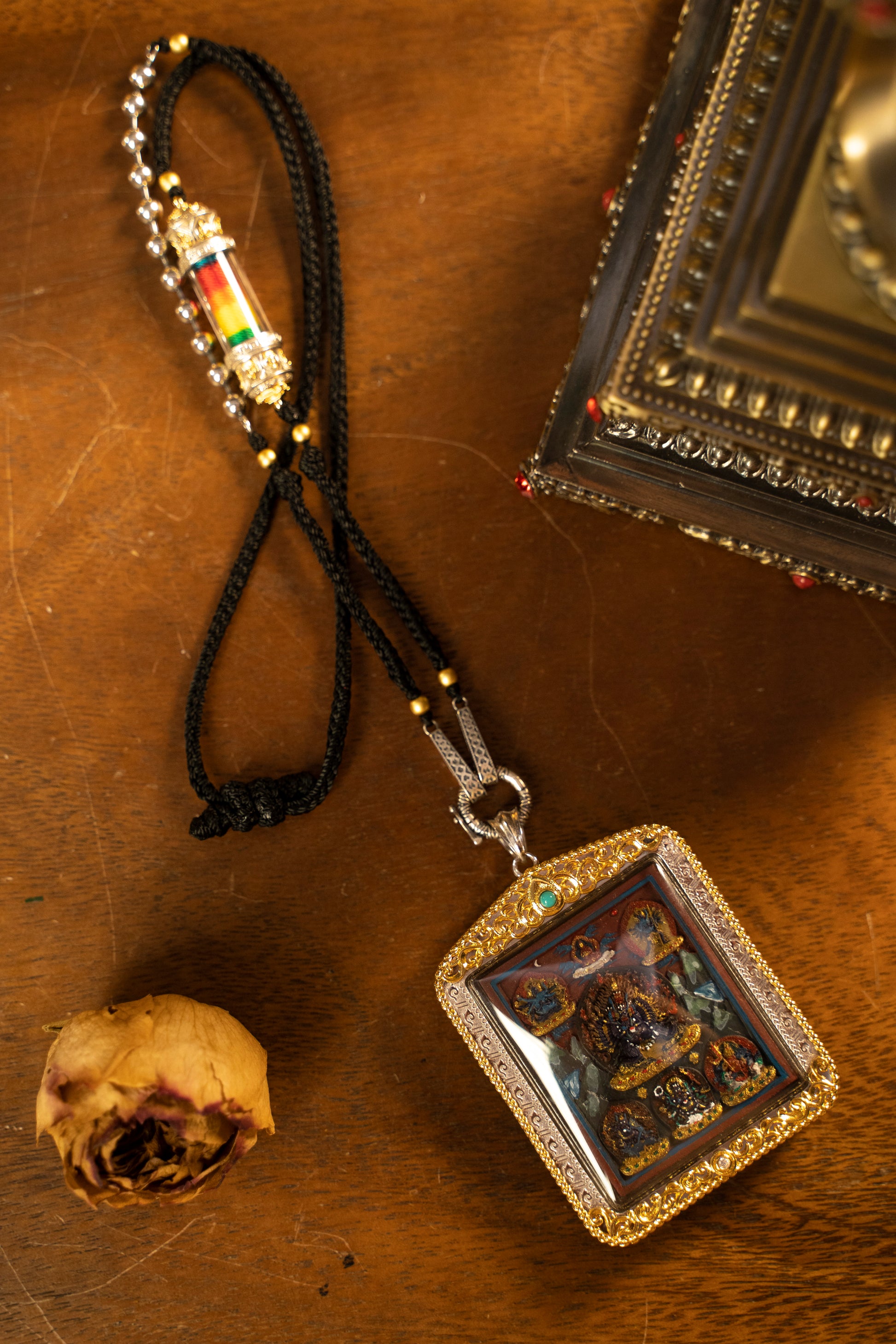 尤为殊胜的是,这尊经由具德密宗上师依循古法,于清净道场或殊胜法会中开光加持**。诵经念咒,注入无上密续能量,使其超越艺术珍品,成为具有真实护佑力的**随身护法圣域**,为佩戴者提供强大的精神屏障与修行助缘。